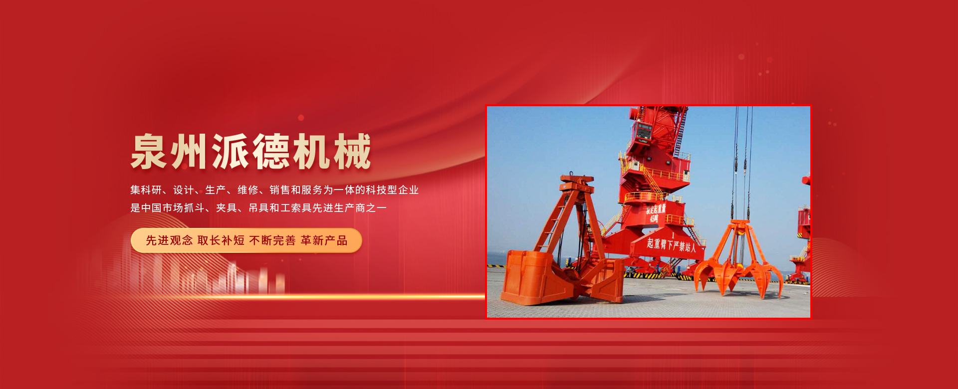 泉州派德機械有限公司成立于2012年5月,位于全國文明的古城福建泉州,公司擁有各類型專業(yè)員工82人,其中高級工程師1人,工程師4人,助理工程師5人,是一家集科研、設(shè)計、生產(chǎn)、維修、銷售和服務為一體的科技型企業(yè),是中國市場抓斗、夾具、吊具和工索具先進生產(chǎn)商之一。產(chǎn)品采用國內(nèi)外先進的設(shè)計方案、技術(shù)規(guī)范、制造過程、工藝流程和服務,憑借在抓斗、夾具、吊具和工索具領(lǐng)域的超前設(shè)計理念和成熟的技術(shù)、工藝和管理,在抓具領(lǐng)域迅速崛起。